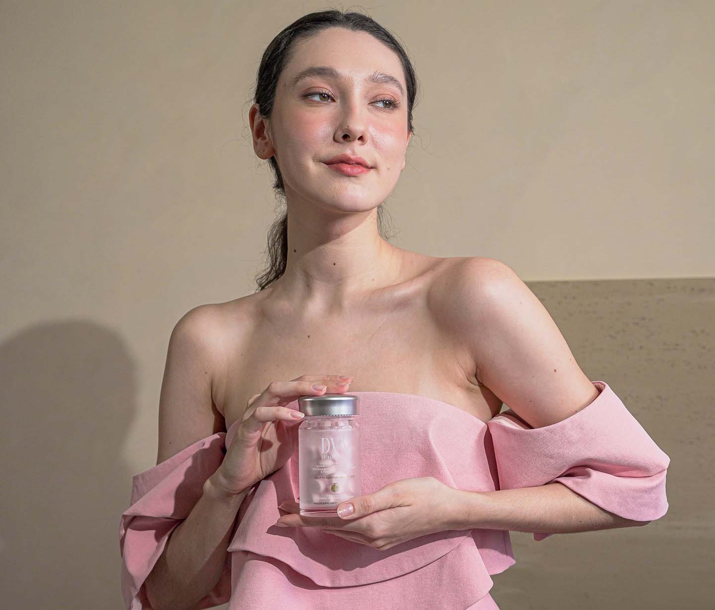 Lihat lebih dekat D.V.N sebagai nutrisi pendukung kulit sehat dan terawat, diformulasikan dengan kolagen dan antioksidan untuk mendukung perawatan kulit secara konsisten dari dalam.