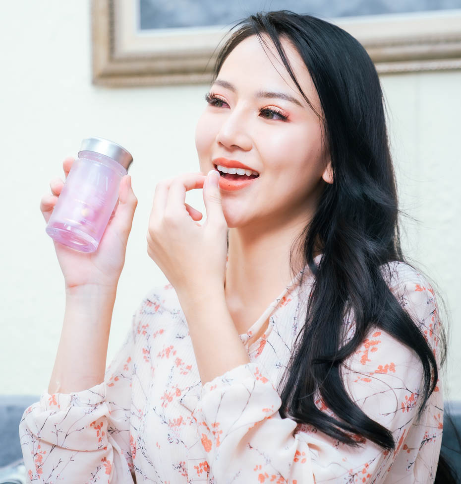 Mengandung 7 bahan aktif termasuk Hydrolyzed Fish Collagen, Ekstrak Delima, Vitamin C, dan L-Glutathione.