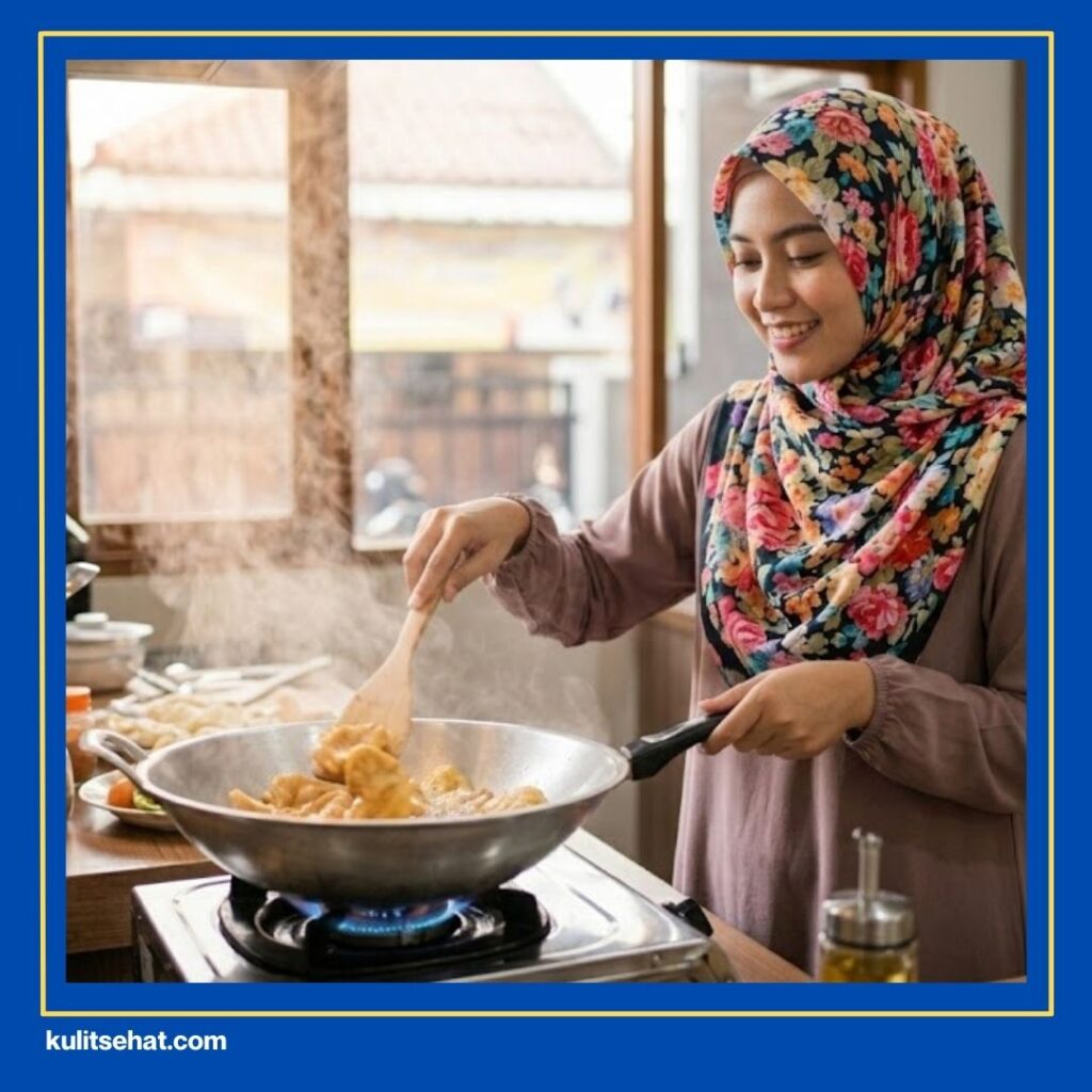 Ngabuburit sambil masak gorengan emang seru banget buat isi waktu luang kakak. Tapi uap minyak panas dari wajan ternyata bisa menyumbat pori-pori wajah kakak secara langsung. Kondisi ini bikin kulit jadi gampang meradang dan memicu bintil merah muncul sangat cepat sekali.
