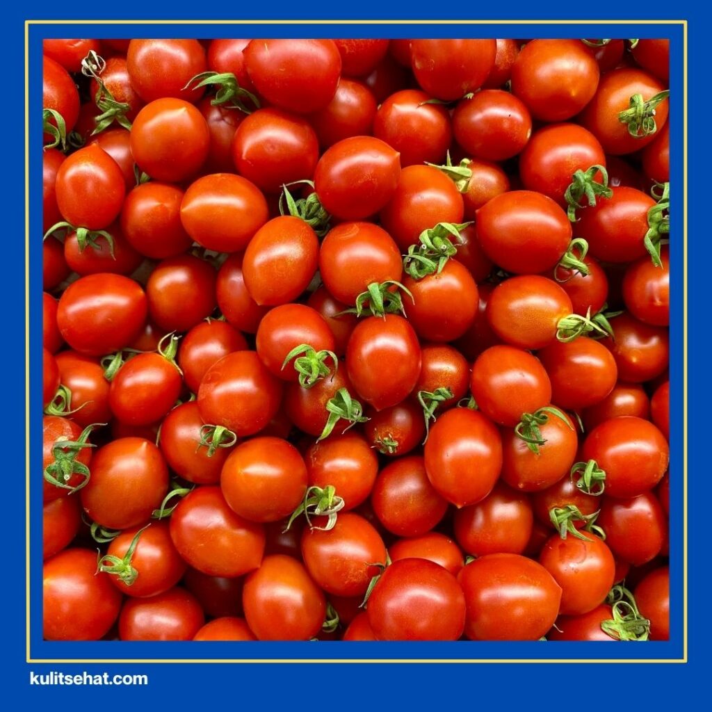 Tomat yang matang merah itu mengandung likopen yang sangat luar biasa sekali buat Kakak. Zat alami ini bekerja kayak tabir surya alami yang lindungi kulit dari dalam. Kakak bisa makan langsung atau dijadiin jus seger pas cuaca panas.