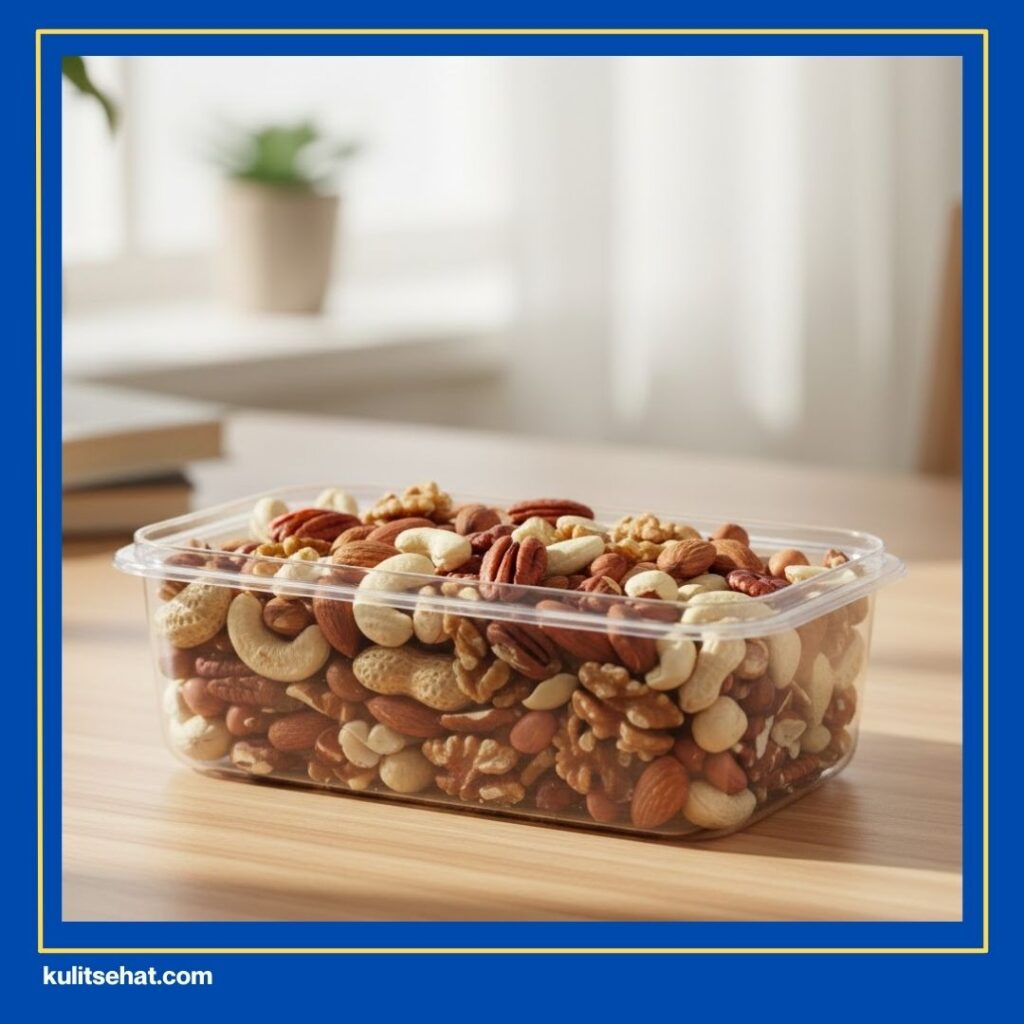 Kelembapan alami wajah Kakak bakal tetap terjaga kalau rajin makan camilan sehat ini. Flek hitam gak bakal berani muncul karena sel kulit Kakak jadi makin kuat. Yuk, stok kacang-kacangan di rumah biar kulit Kakak selalu binar dan sehat.
