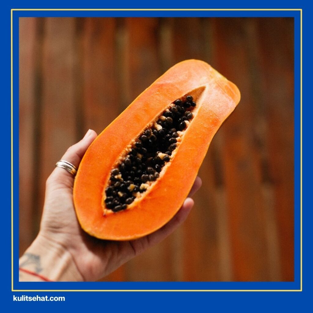 Pepaya punya enzim spesial yang sangat bagus buat angkat sel kulit mati di wajah. Kakak bisa makan buah ini secara rutin agar proses pembersihan wajah berjalan lancar. Rasanya yang manis bikin kakak ketagihan buat selalu sedia di rumah.