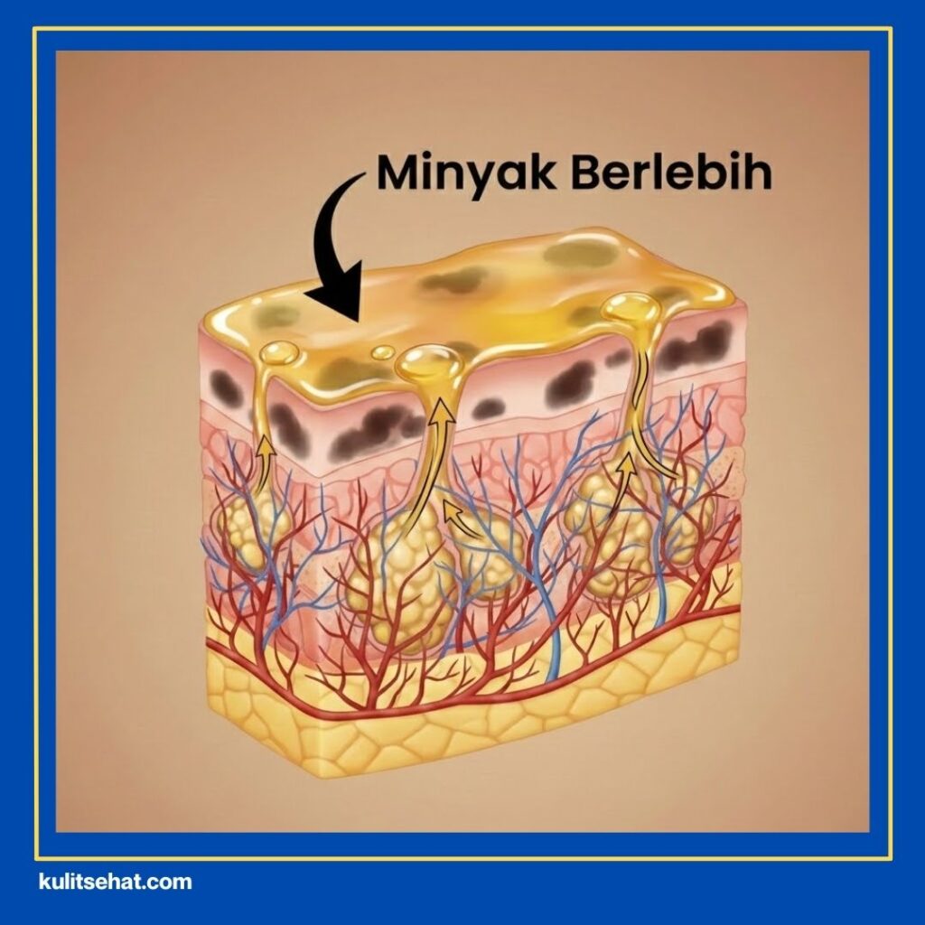Wajah yang mendadak jadi pabrik minyak emang beneran bikin risih banget buat kita semua. Kelenjar sebasea kakak bakal kerja lembur buat produksi sebum saat hormon sedang gak stabil lagi.